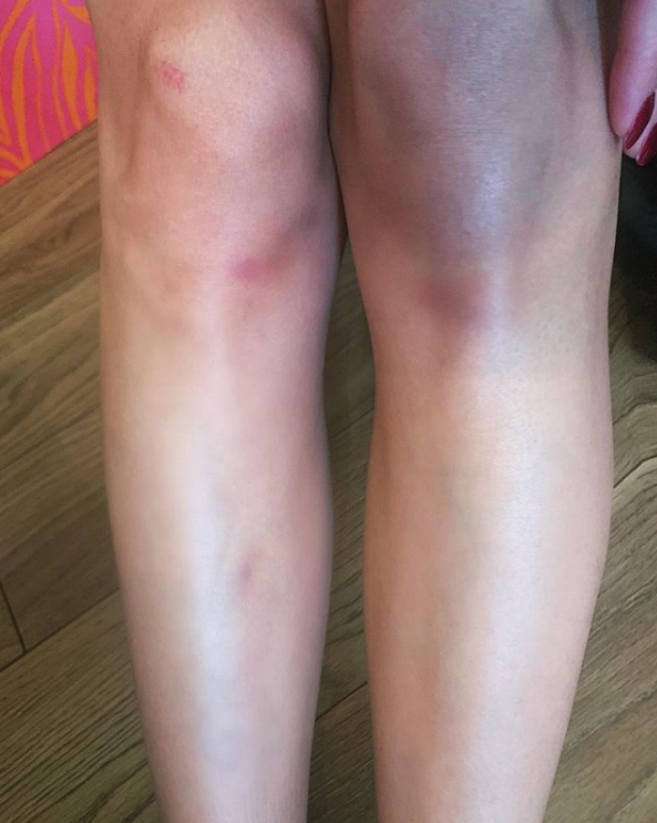 Также поп-звезда разместила снимок страшно травмированного во время шоу колена.