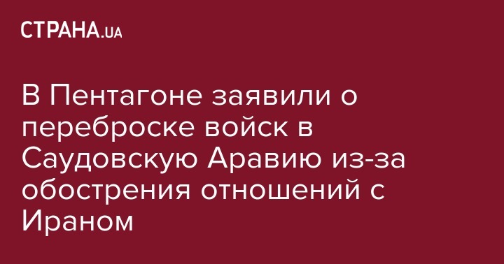 В Пентагоне заявили о переброске войск в Саудовскую Аравию из-за обострения отношений с Ираном