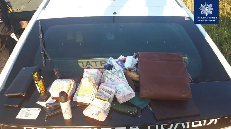 В полицию об инциденте сообщил свидетель происшествия. Экипажи получили ориентировку и заметили описанный Renault на автодороге Ровно - Луцк в районе села Бронники. Автомобиль остановили, им управлял 36-летний гражданин Грузии, в салоне находились еще двое мужчин. Во время поверхностной проверки авто инспекторы обнаружили в салоне карманные ножи, газовые баллончики и денежные средства, как позже было установлено - в сумме 223 737 гривен.