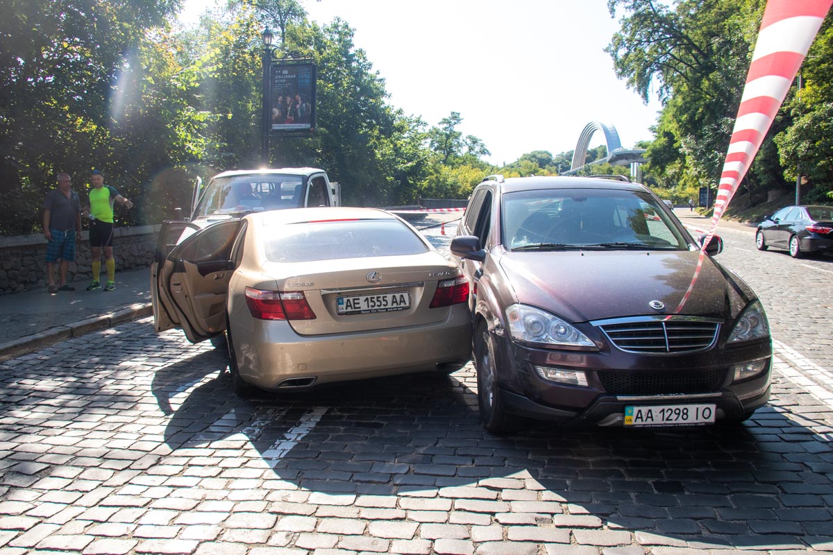 Инцидент произошел около 09:00 на Владимирском спуске. Здесь лоб в лоб столкнулись ГАЗель и Lexus, который вылетел на встречную полосу, ударив перед этим Ssang Yong. По словам водителя ГАЗели, он спускался по Владимирскому спуску в сторону Почтовой площади и увидел, как Lexus вылетел на встречную полосу, врезался в Ssang Yong, а после и в его грузовик.