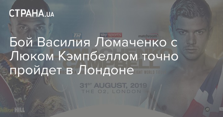 Чемпион мира по версиям WBO и WBA в легком весе Василий Ломаченко выйдет на ринг против британца Люком Кэмпбеллом 31 августа на арене O2 в Лондоне. Об этом официально сообщила промоутерская компания Matchroom Boxing, опубликовав анонс поединка.
