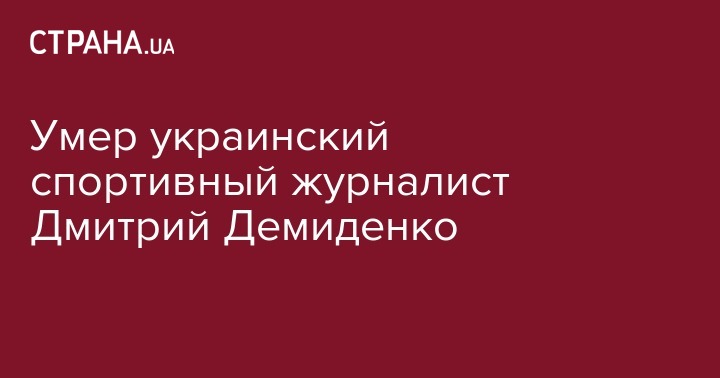 В субботу, 20 июля, умер известный украинский спортивный журналист Дмитрий Демиденко. Об этом в Facebook сообщил председатель Полтавской областной организации НСЖУ Евгений Лопушинский.