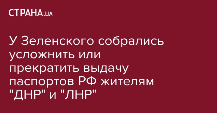 У Зеленского собрались усложнить или прекратить выдачу паспортов РФ жителям "ДНР" и "ЛНР"