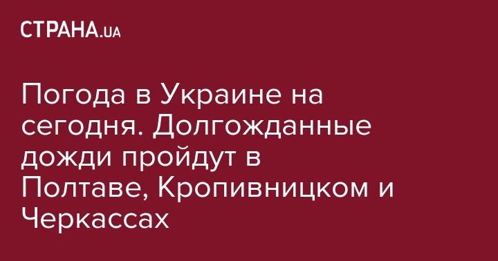 Сегодня в Украине на большей части территории пройдут дожди с грозами, осадки обойдут стороной только аннексированный Крым и Донбасс. Долгожданная влага придет в центральные регионы Украины, где лето выдалось особенно засушливым. Об этом сообщают синоптики Укргидрометцентра.
