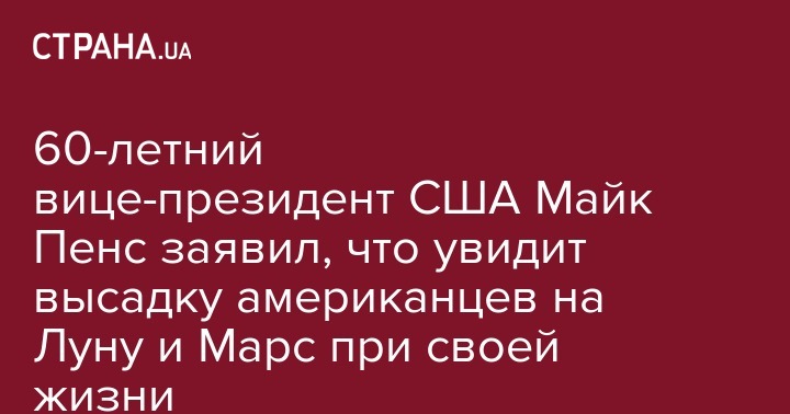 Вице-президент также выразил уверенность, что США смогут высадить человека на Марс при его жизни. Стоит отметить, что Майк Пенс родился 7 июня 1959 года, сейчас ему 60 лет.