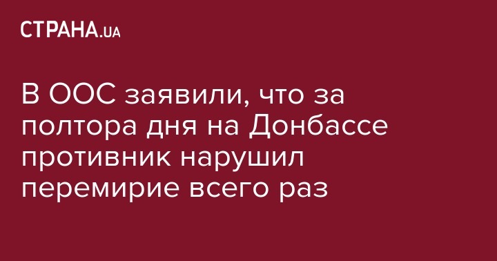 В ООС заявили, что за полтора дня на Донбассе противник нарушил перемирие всего раз