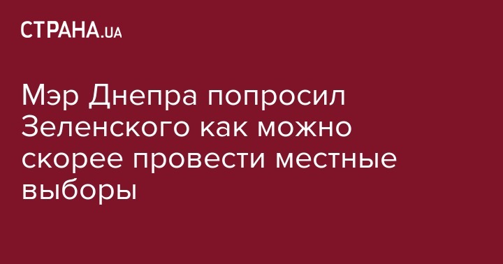 Мэр Днепра попросил Зеленского как можно скорее провести местные выборы