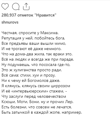 Российский музыкант Сергей Шнуров и телеведущая Ксения Собчак развернули стихотворный поединок в своих аккаунтах социальной сети Instagram.