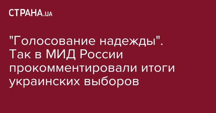 Также в МИД РФ обратили внимание на то, что радикалы и правые в парламент не прошли и подчеркнули, что, видимо, "народ Украины устал от политики запугивания и террора, проводившейся предыдущими властями". Кроме того, в российском ведомстве полагают, что парламентские выборы можно назвать "голосованием надежды".