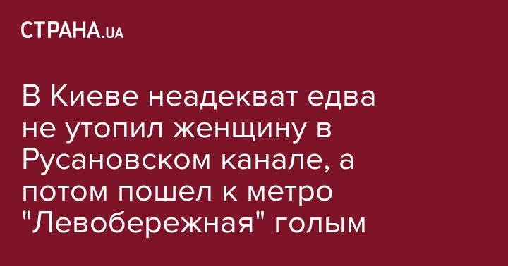 Подозреваемому в попытке утопить женщину в Русановском канале объявлено подозрение в покушении на умышленное убийство. Его поймали голым у метро "Левобережная". Об этом сообщает пресс-служба прокуратуры Киева.