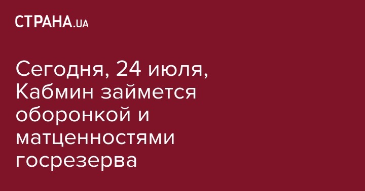 На заседании в среду, 24 июля, Кабинет министров Украины рассмотрит ряд вопросов, в том числе - изменение порядка формирования государственного оборонного заказа и проведения операций с материальными ценностями госрезерва. Об этом свидетельствует повестка дня, размещенная на сайте Кабмина.