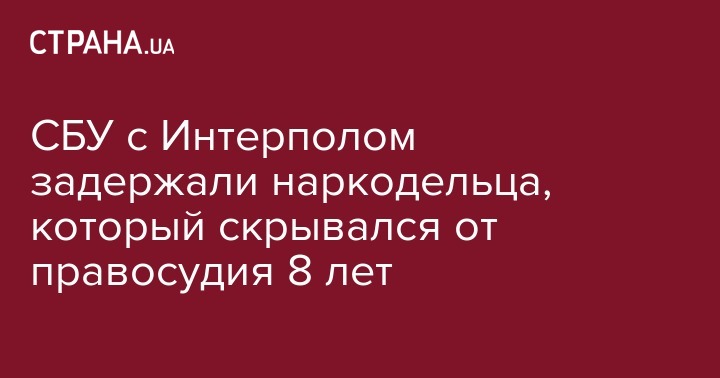 Служба безопасности Украины совместно с Интерполом и немецкой полицией разоблачили и задержали наркодельца, который 8 лет скрывался от следствия за организацию контрабанды наркотиков. Об этом сообщает сайт СБУ.