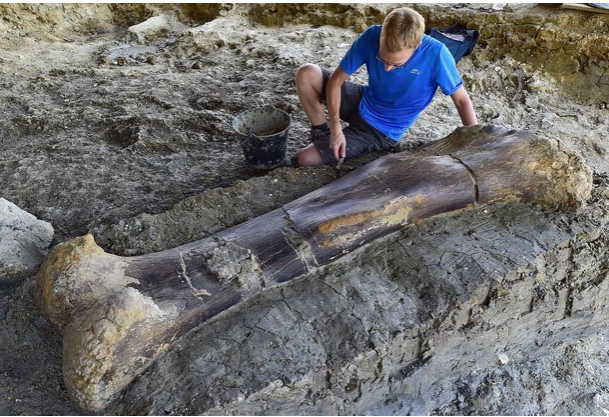 Во время раскопок во Франции ученые нашли бедренную кость чрезвычайно большого животного. Кость оказалась размером с человека и весит около 508 кг.