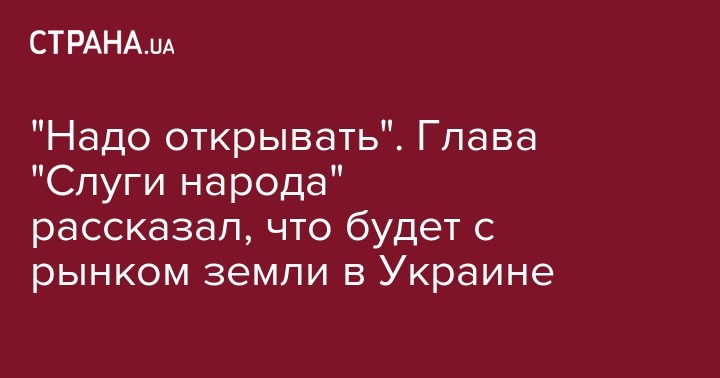 Так, к примеру, Дмитрий Разумков, глава президентской партии "Слуга народа", одержавшей сокрушительную победу на парламентских выборах, рассказал о планах по поводу введения в стране открытого рынка земли.