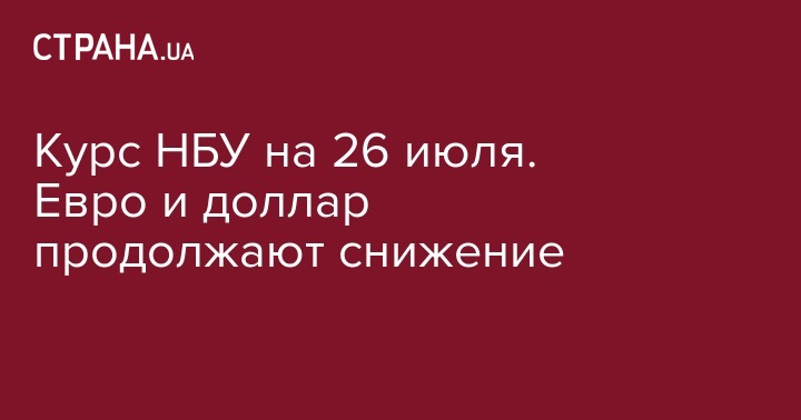 В НБУ на пятницу, 26 июля, установили новый курс основных мировых валют. Так, курс доллара по сравнению с предыдущим банковским днем снизился на 3 копейки - до 25,48 гривен. Евро также подешевел, потеряв 10 копеек. Стоимость российского рубля с четверга почти не изменилась. Об этом сообщает пресс-служба Центробанка.