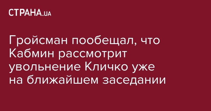 Кабинет министров Украины рассмотрит вопрос о согласовании увольнения главы Киевской городской государственной администрации (КГГА) Виталия Кличко на ближайшем заседании. Об этом премьер-министр Украины Владимир Гройсман сказал в эфире Радио НВ.