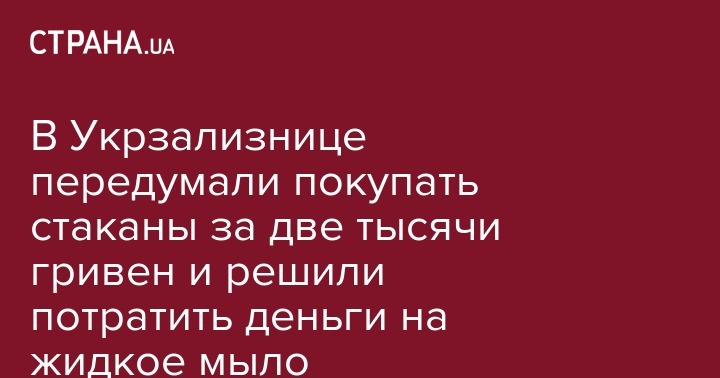 В Укрзализнице передумали покупать стаканы за две тысячи гривен и решили потратить деньги на жидкое мыло