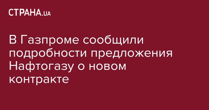 В Газпроме сообщили подробности предложения Нафтогазу о новом контракте