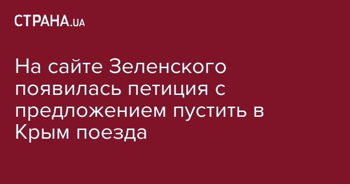 Переселенец из Севастополя разместил на сайте президента Владимира Зеленского петицию с предложением восстановить железнодорожное сообщение между Украиной и АР Крым. Об этом свидетельствует информация на сайте главы государства.