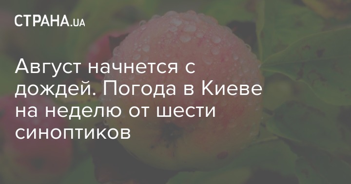 Сайт Sinoptik.ua также обещает нежаркое начало августа. В понедельник-вторник +25...+30. Вероятность грозового дождя. В среду до +22 днем - осадки. В четверг и пятницу сухо: воздух прогреется до 21...+25. На выходных, 3-4 августа, в Киеве дождь, температура +22...+23 днем.