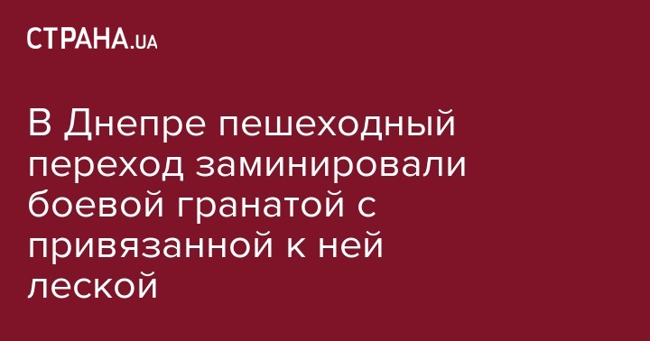 В Днепре неизвестные попытались устроить взрыв на проезжей части, заложив на пешеходном переходе обмотанную скотчем боевую гранату с привязанной к ней леской. Инцидент произошел 29 июля, около 08:00, на проспекте Свободы, передает "Информатор".
