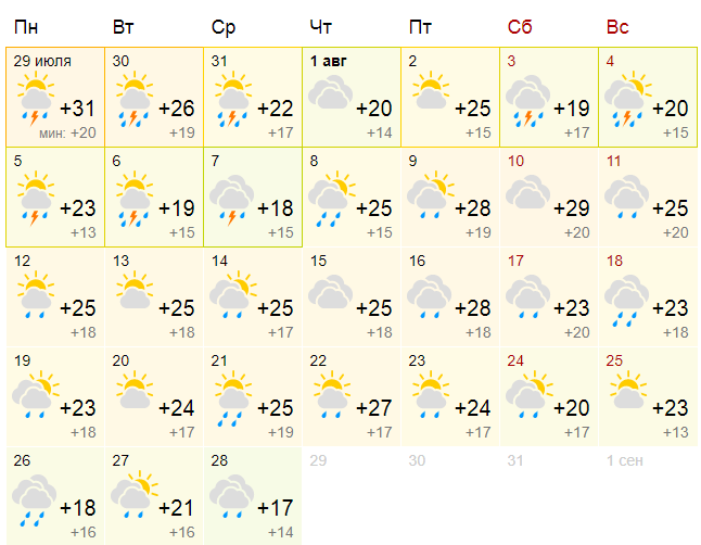 По данным Sinoptik.ua, первая неделя августа будет нежаркой: +22...+26. Часто будет идти дождь: 3,4,5 и 7 августа.