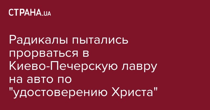 Группа молодых радикально настроенных людей попыталась проехать на территорию Киево-Печерской Лавры в автомобиле по "удостоверению Христа". Об этом, ссылаясь на Telegram-канал "Правблог", написал на Facebook журналист и медиа-эксперт Юрий Молчанов.