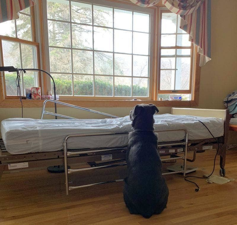 Настоящий шквал эмоций пользователей Facebook вызвало фото, на котором запечатлен грустный трехлетний пес по кличке Лосяш, сидящий возле пустой больничной койки.