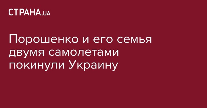 Семья экс-президента Петра Порошенко вылетела из Украины двумя самолетами в Объединенные Арабские Эмираты и Германию. Об этом "Стране" стало известно из собственных источников в Госпогранслужбе.