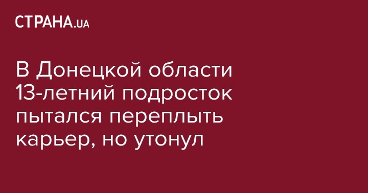 В Донецкой области 13-летний мальчик пытался переплыть карьер, но утонул на его середине, так как ему не хватило сил. Об этом сообщает Отдел коммуникации ГУ НП в Донецкой области