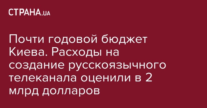 Почти годовой бюджет Киева. Расходы на создание русскоязычного телеканала оценили в 2 млрд долларов