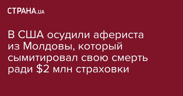 В США осудили афериста из Молдовы, который сымитировал свою смерть ради $2 млн страховки