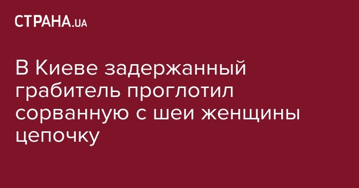 В Киеве прохожие задержали злоумышленника, который ограбил женщину, а затем, чтобы скрыть это проглотил сорванную с ее шеи цепочку. Об этом сообщается на сайте столичной Нацполиции.