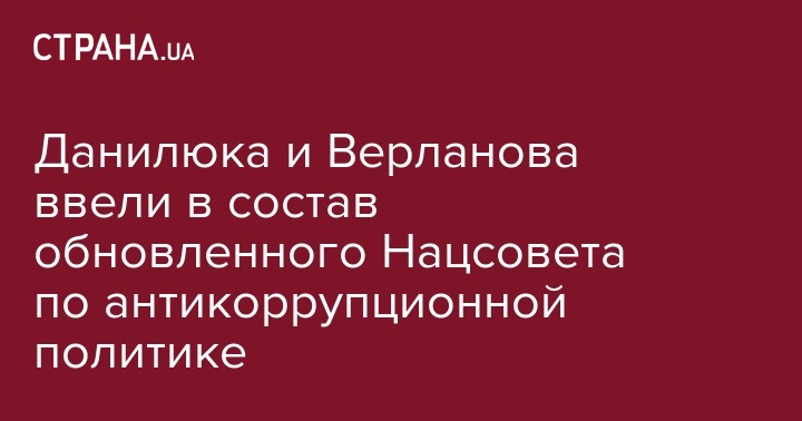 Президент Украины Владимир Зеленский ввел секретаря Совета национальной безопасности и обороны Александра Данилюка и главу Государственной налоговой службы Сергея Верланова в состав Национального совета по вопросам антикоррупционной политики. Соответствующий указ №565/2019 от 31 июля 2019 года обнародован в среду на сайте главы государства.