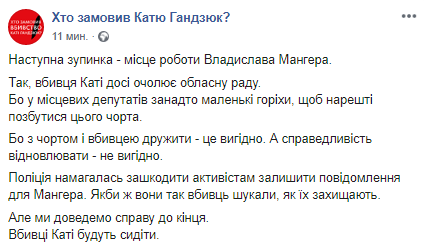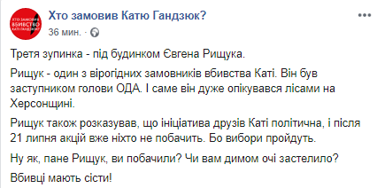 Скриншот, фото: Facebook/ Хто замовив Катю Гандзюк?