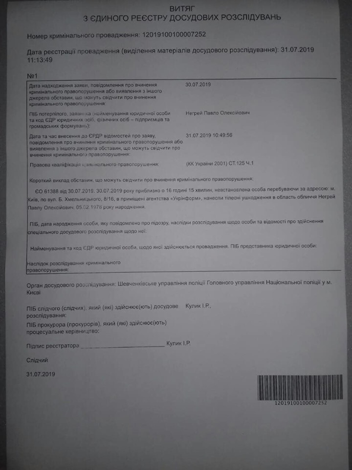 Полиция Киева завела уголовное дело по нападению на пресс-центр "Укринформа". Документ