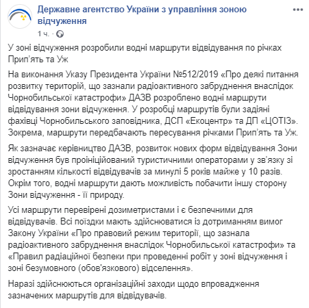 Скриншот: Facebook/Державне агентство України з управління зоною відчуження