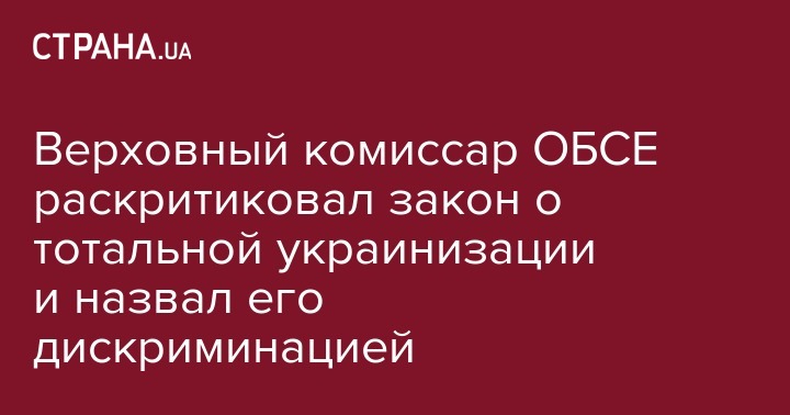 Верховный комиссар ОБСЕ Ламберто Заньер, в связи с законом о тотальной украинизации, назвал текущую языковую политику в Украине нарушающей права национальных меньшинств и дискриминационной.
