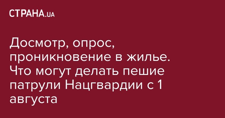 Досмотр, опрос, проникновение в жилье. Что могут делать пешие патрули Нацгвардии с 1 августа