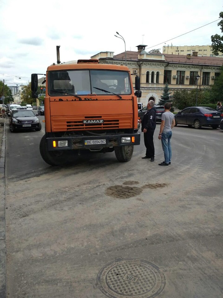 В четверг, 1 августа, около 800 метров улицы Бульварно-Кудрявской Шевченковского района были залиты бетоном, который разлился из грузового автомобиля.