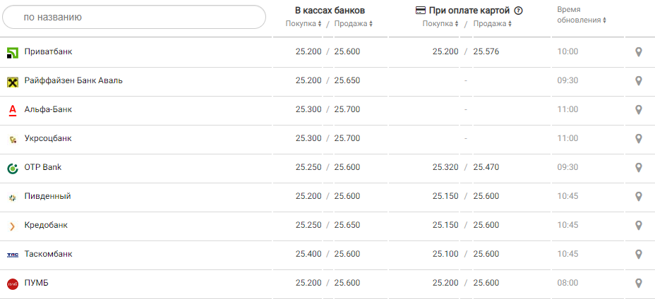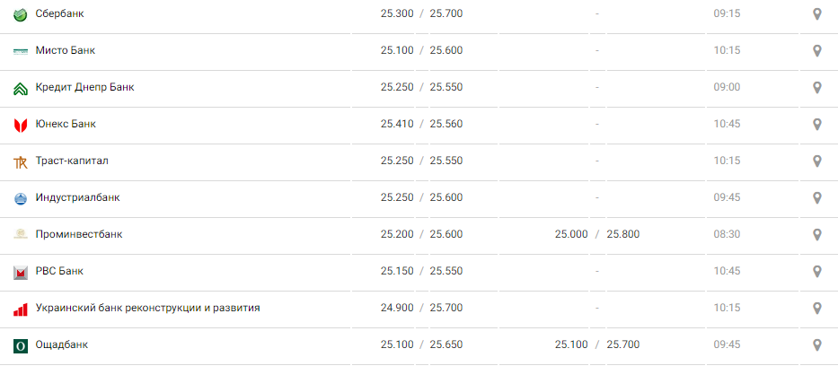 К вечеру покупка 25,2-25,4 грн. продажа 25,6-25,8 грн.