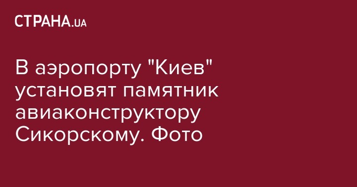 В международном аэропорту "Киев" им. Игоря Сикорского (Жуляны) через несколько недель будет установлен памятник авиаконструктору Сикорскому. Об этом сообщила пресс-служба аэропорта в пятницу, 2 августа.