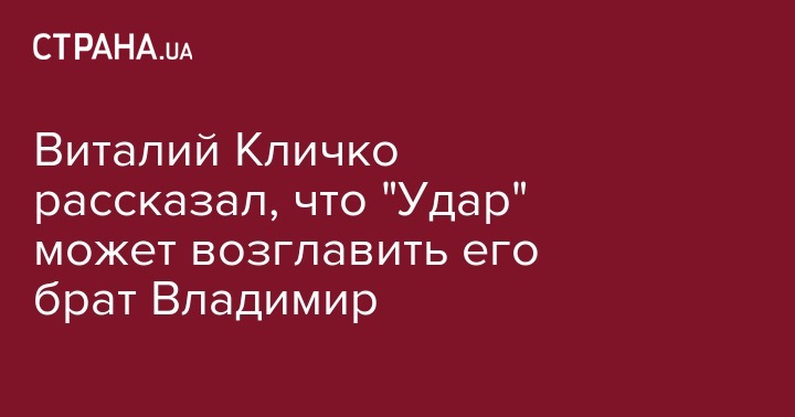 Виталий Кличко рассказал, что "Удар" может возглавить его брат Владимир