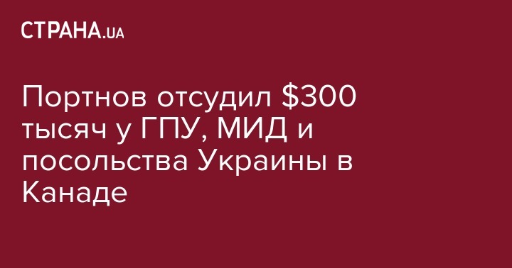 Печерский райсуд Киева удовлетворил иск юриста Андрея Портнова о взыскании ущерба в размере $300 тыс., который причинили ему чиновники ГПУ, МИД и посольства Украины в Канаде, за инициирование канадских санкций и фальсификацию уголовных дел. Об этом Портнов написал в Faebook.