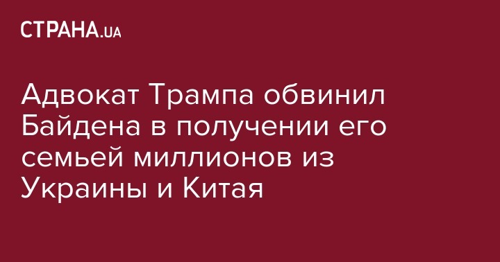 Адвокат Трампа обвинил Байдена в получении его семьей миллионов из Украины и Китая
