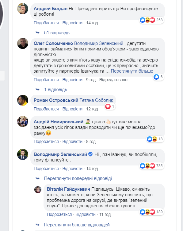 После чего к нему в комментарии неожиданно нагрянули глава ОП Андрей Богдан и сам Зе. И прямо заявили, что нардеп должен раскошелиться.