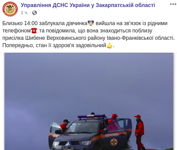 В субботу около 14.00 девочка вышла на связь с родными по телефону и сообщила, что находится вблизи поселка Шибене Верховинского района Ивано-Франковской области.