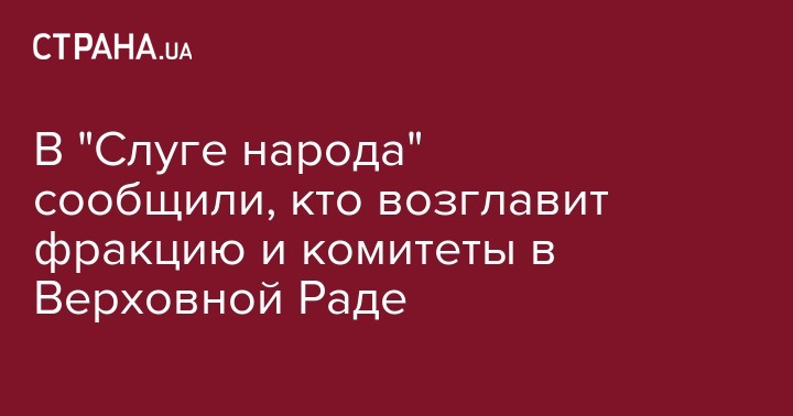 В пресс-службе "Слуги народа"сообщили, что в партии определились с претендентами на должности глав комитетов Верховной Рады, а также назвали главу фракции, - передает "Интерфакс-Украина".