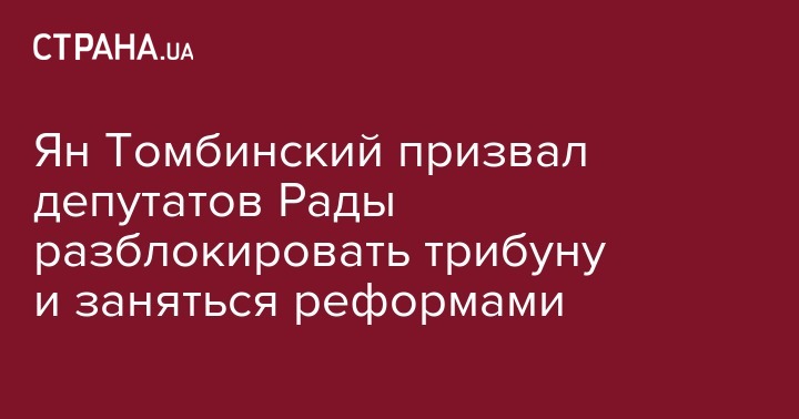 Глава представительства Европейского Союза в Украине Ян Томбинский заявил, что депутатам Рады нужно как можно скорее разблокировать трибуну и наконец заняться реформами в стране. Об этом сообщает 112 Украина.