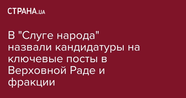"Итак, на должность председателя Верховной Рады Украины фракция делегирует Дмитрия Разумкова, на должность первого заместителя председателя ВР - Руслана Стефанчука. Партию "Слуга народа" может возглавить Александр Корниенко. Кандидатом на должность председателя фракции является Давид Арахамия. У него будет 15 заместителей", - написала спикер.